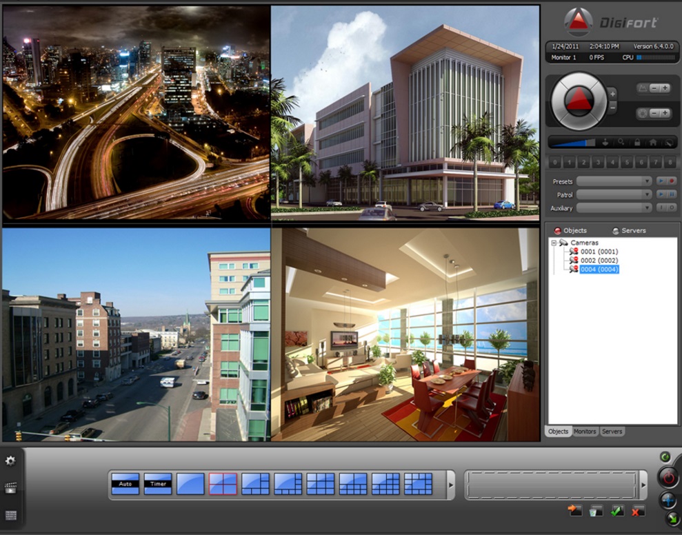 Digifort myndeftirlitskerfi er samsett af myndeftirlitshugbúnaði, myndavélum, netbeini og tölvubúnaði sem hýsir upptökur á hörðum diski.