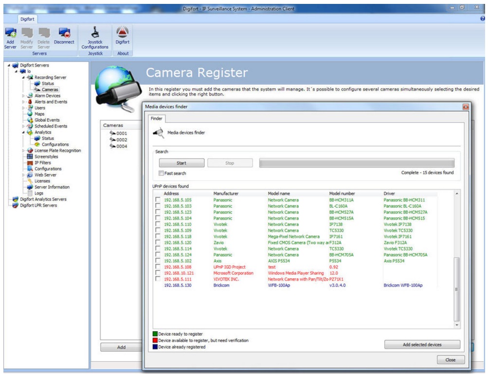 Digifort hugbúnaður styður yfir 90 framleiðendur á myndavélum og er stöðugt verið að uppfæra lista með nýjum framleiðendum.