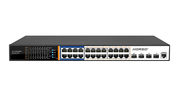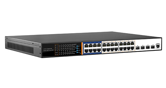 24 10/100/1000Mbps RJ45 port4 gigabit SFP fiber port1 Console port