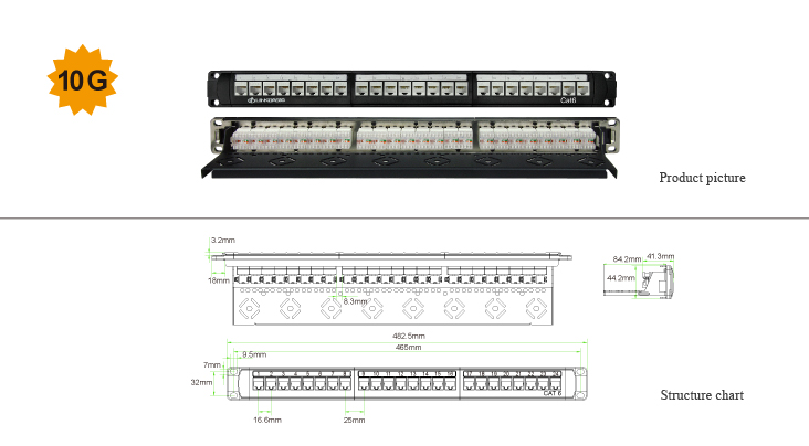 24 porta Keystone panel + 24 Cat6 óskermaðir kubbar