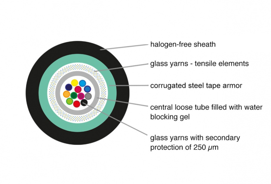 - suitable for direct burial campus backbone applications, cable channels and cable bridges without the need of additional protection
