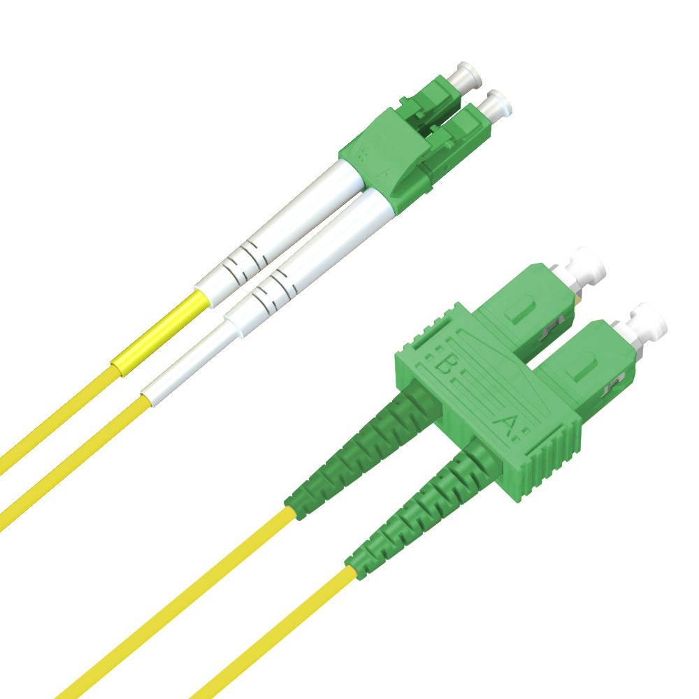 Ljósleiðara tengisnúra SM með SC/APC og LC/APC tengjum, 2 metrar, 2mm kápa.
