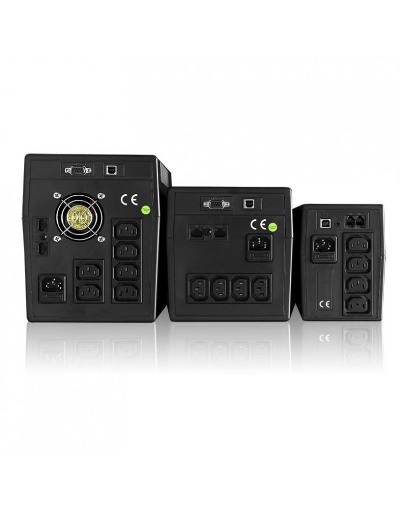 Litill varaaflgjafi með 4*C13 tenglum. Afl á varaaflgjafa er 1100VA - 600W. Innbyggð 2*7Ah rafhlaða.